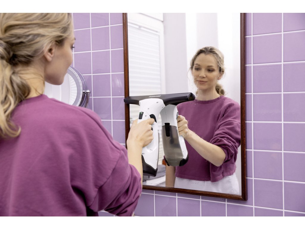 S inovatívnym čističom okien spôsobil Kärcher revolúciu v čistení okien. Keď použijete originálny čistič okien s odsávaním Kärcher, upratovanie sa stane detskou hrou, ktorá vám ušetrí veľa času a námahy. Vďaka elektrickému nasávaniu je obťažovanie kvapkajúcou vodou už minulosťou. Inteligentná kombinácia sprejovej fľaše a utierky z mikrovlákna spolu s funkciou odsávania vysávača Window Vac zaisťuje mimoriadne účinné čistenie a žiarivé čistenie okien – bez šmúh alebo zvyškov. Okrem toho praktický a ergonomický čistič na okná Kärcher umožňuje mimoriadne hygienické čistenie okien, pretože nedochádza k priamemu kontaktu so znečistenou vodou.