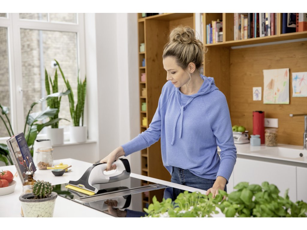 Výkon, ktorý zapôsobí: Čistič okien WV 4-4 Plus zaujme vymeniteľnou batériou pre nekonečnú prevádzkovú dobu bez prerušenia, LED indikátorom stavu batérie, ako aj inovatívnou silikónovou stierkou, ktorá umožňuje čistenie okien až po okraj podlahy. Inteligentná kombinácia fľaše s rozprašovačom a utierky z mikrovlákna, ako aj funkcia odsávania okenného vysávača zaručujú trblietavé okná - bez akýchkoľvek pruhov a zvyškov. Všetky ostatné hladké povrchy sa dajú ľahko čistiť. Umývanie okien ergonomickým akumulátorovým čističom okien Kärcher WV 4-4 Plus je mimoriadne hygienické, pretože pri vyprázdňovaní a čistení nádrže neprichádza do priameho kontaktu so znečistenou vodou. Vymeniteľný akumulátor 4 V Kärcher Power nie je súčasťou dodávky. Kompatibilný so všetkými zariadeniami platformy 4 V Kärcher Battery Power.