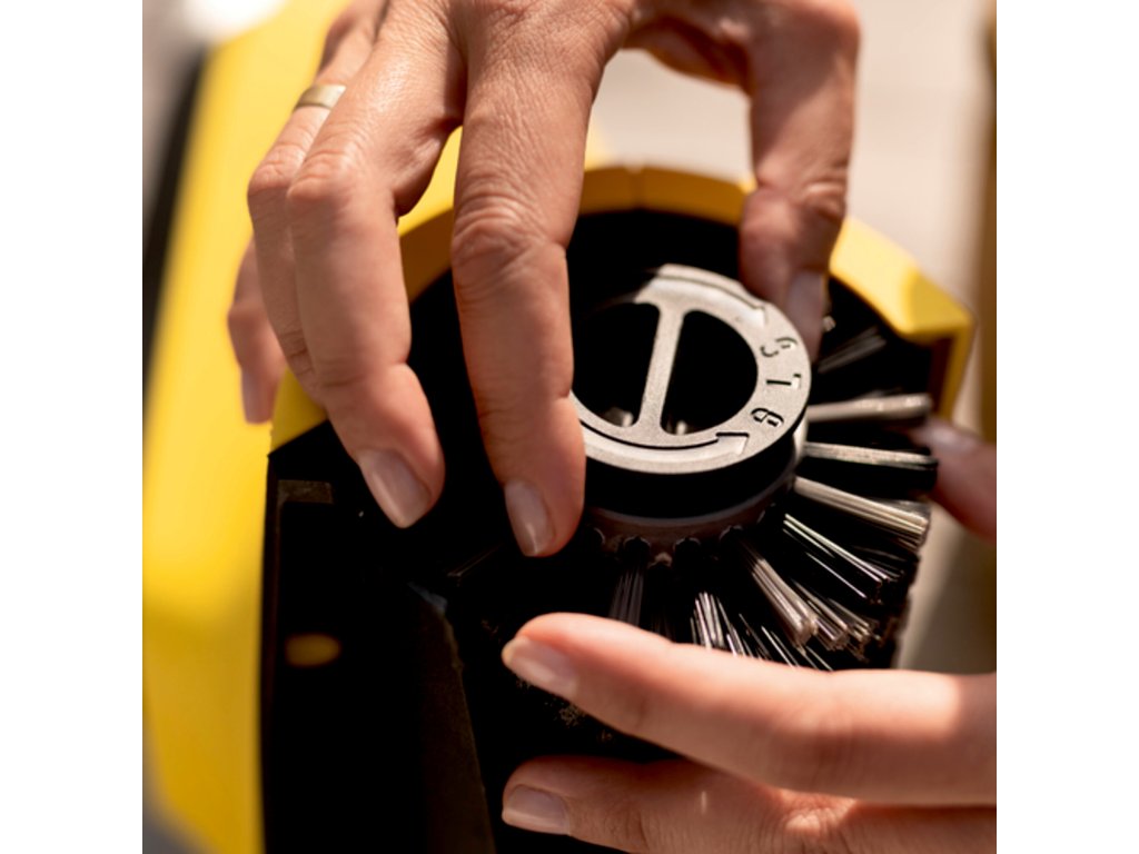 Vymeniteľné valcové kefy: Vhodné na čistenie drevených terasových panelov a WPC podlahových krytín. V prípade potreby je možné kefy jednoducho vymeniť bez použitia náradia.