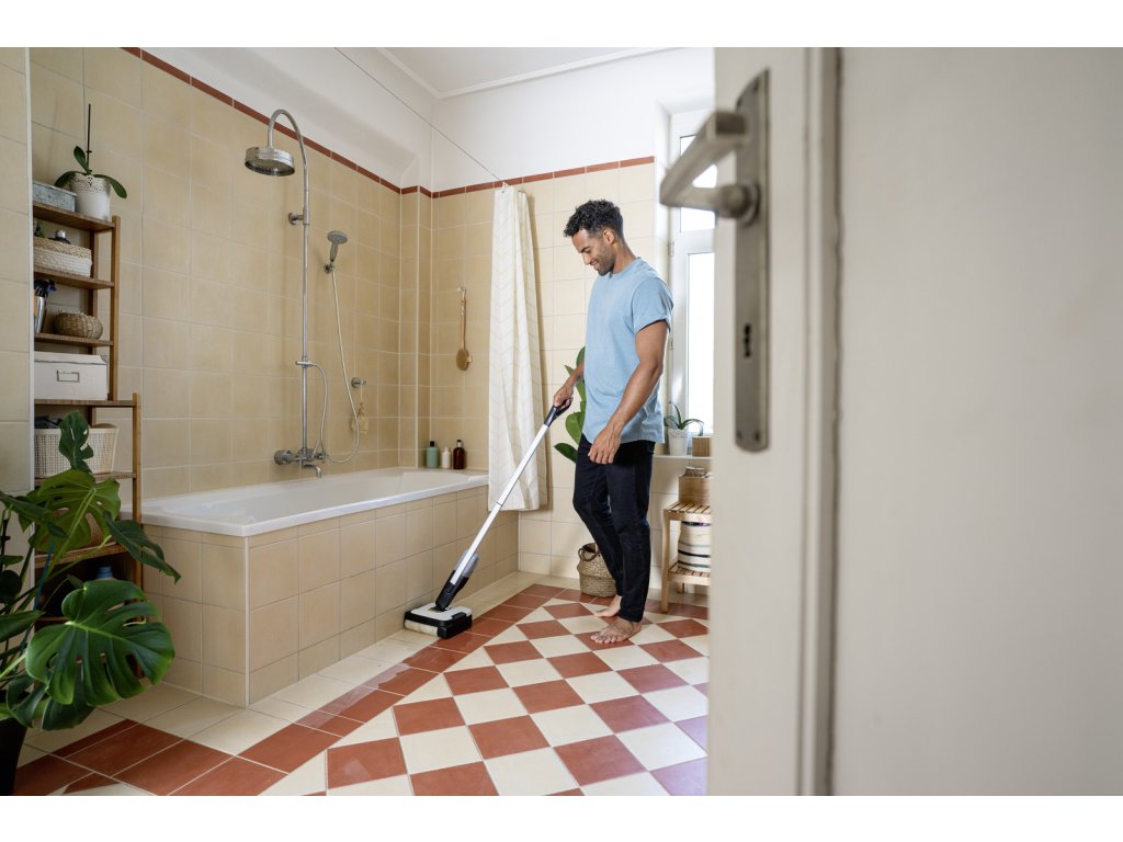 Čistič podláh Kärcher FC 2-4 vyniká kompaktným dizajnom, nízkou hmotnosťou len 2,2 kg a jednoduchým ovládaním. Automatické zapínanie a vypínanie umožňuje pohodlné používanie – stačí potiahnuť rukoväť dozadu a zariadenie sa okamžite aktivuje, pričom odstraňuje suché aj mokré nečistoty v jednom kroku.
