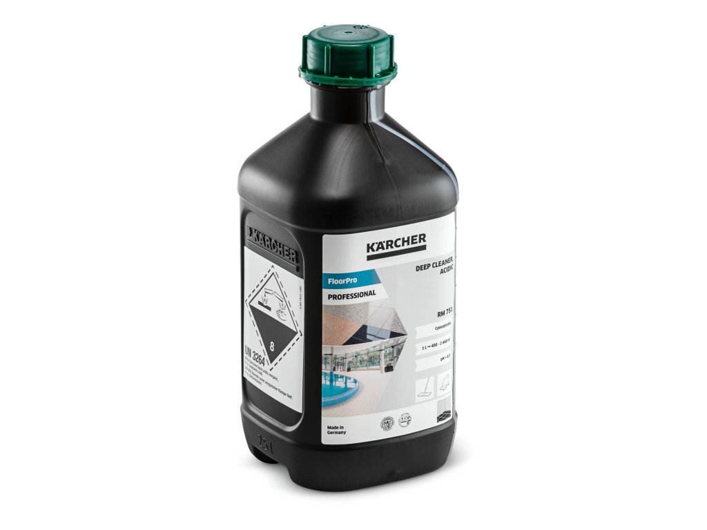FloorPro základný čistič, kyslý RM 751 od Kärcher je výkonný, málo penivý čistiaci prostriedok, ktorý je ideálny pre umývacie automaty. Na báze kyseliny sulfamovej účinne odstraňuje vodný kameň, vápenaté usadeniny, hrdzu, mliečny kameň, močový kameň a cementový povlak zo všetkých kyselinám odolných povrchov, ako sú keramické obklady, sanitárne zariadenia a kov. Je to skvelé riešenie pre bazény a hĺbkové čistenie po stavebných prácach. Vďaka ochrane proti korózii a jednoduchým vlastnostiam na oddelenie je ideálny aj na použitie v priemyselnom prostredí.