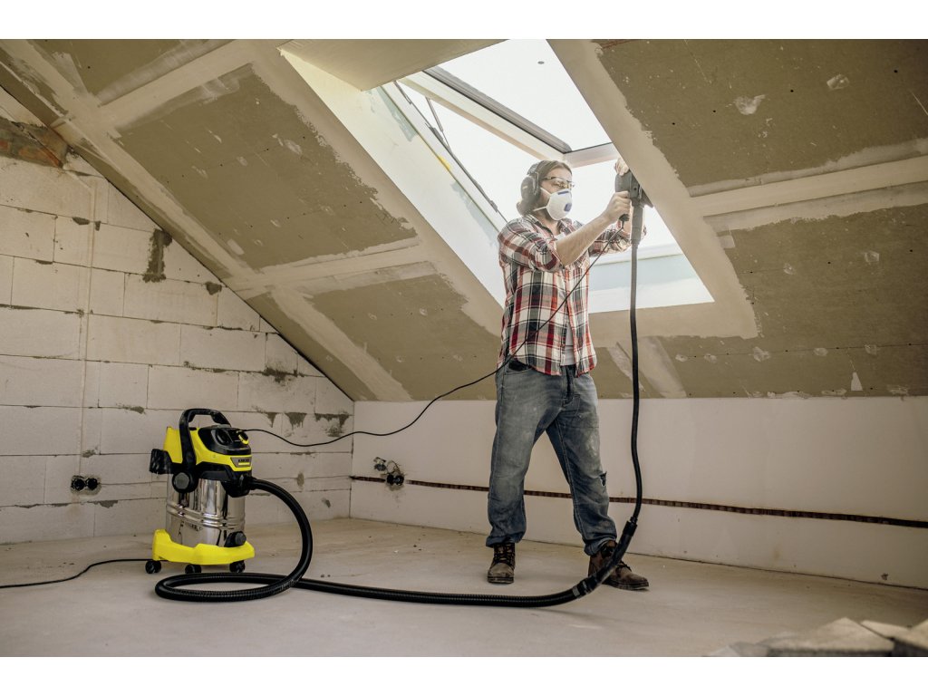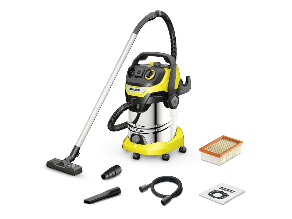 Kärcher WD 6 P S V-30/8/35/T je prémiový mokro-suchý vysávač s mimoriadnym výkonom, inteligentnými funkciami a odolnou konštrukciou. Vďaka výkonnému motoru s nízkym príkonom 1300 W a veľkému objemu nádoby 30 litrov z nehrdzavejúcej ocele je ideálny pre čistenie veľkých plôch, ťažko odstrániteľných nečistôt, kvapalín aj jemného prachu – doma, v dielni, na stavbe či v záhrade.