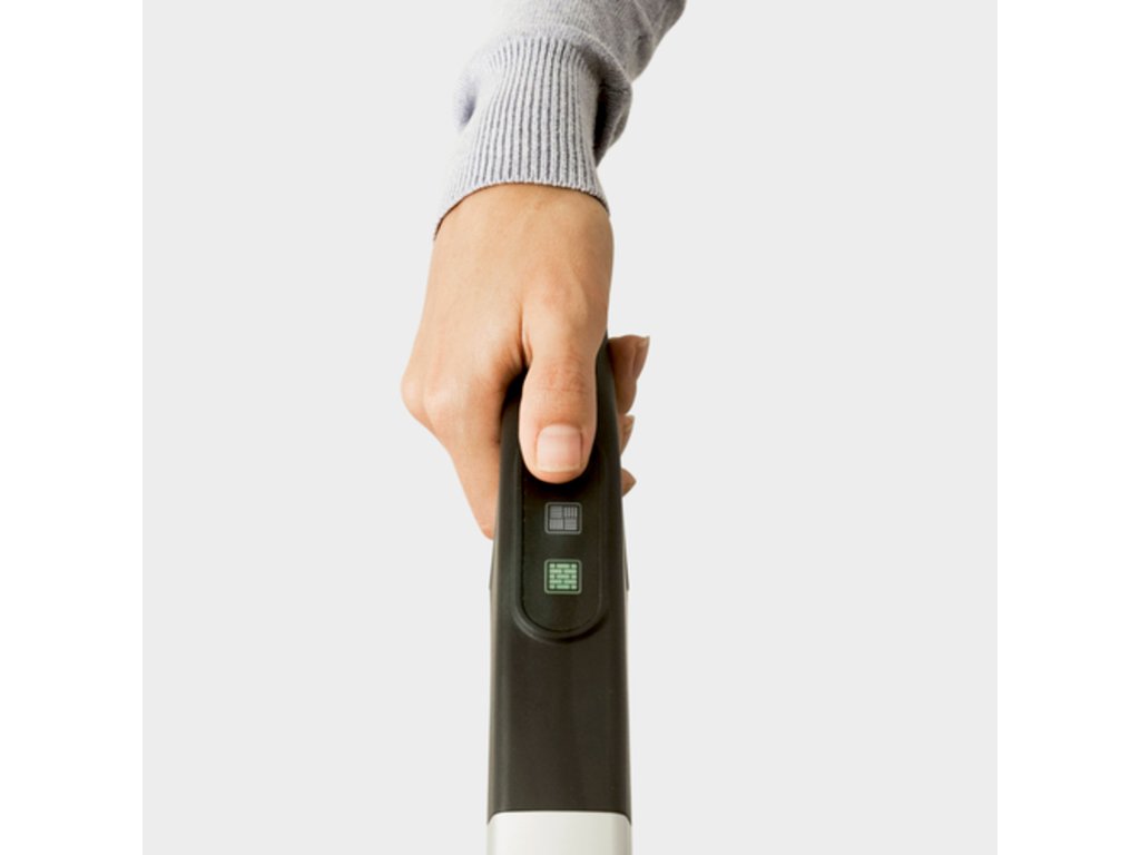 - Prednastavená regulácia prietoku pary umožňuje nastaviť čistiaci výkon podľa potrieb, a to v dvoch krokoch, čo poskytuje optimálnu flexibilitu pre rôzne typy podláh.