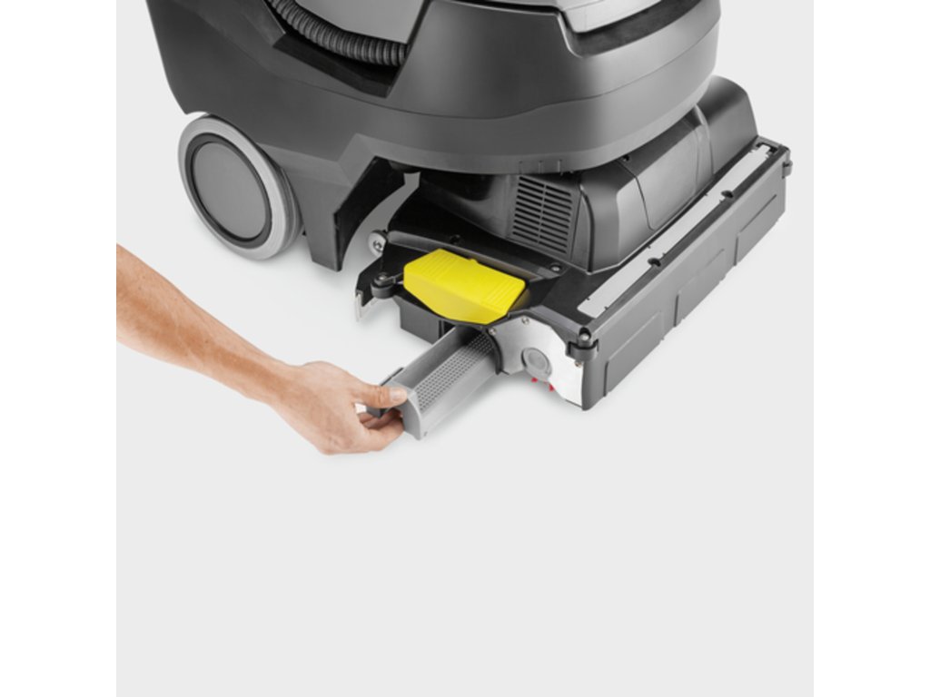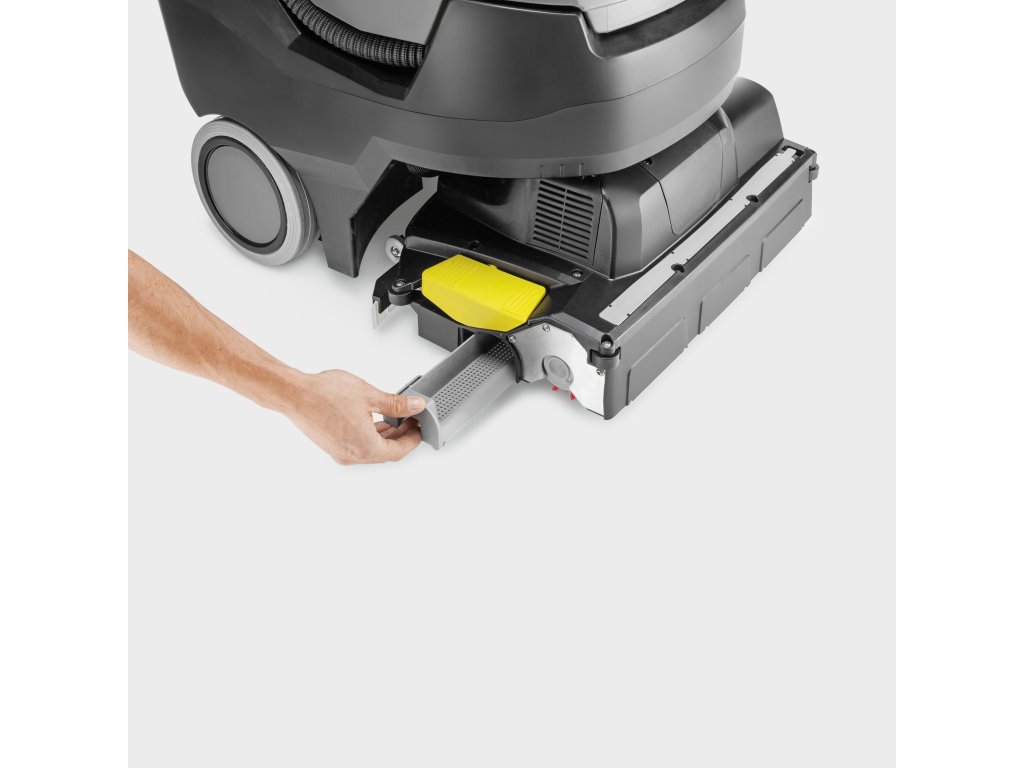 Flexibilita pri manévrovaní: Vďaka otáčateľnej valcovej kefovej hlave, ktorá sa pohybuje o 200 stupňov v oboch smeroch, a pokročilej technológii KART (Kärcher Advanced Response Technology), je stroj mimoriadne obratný a prispôsobivý. To znamená, že je ideálny aj na silno zastavané plochy s nábytkom alebo regálmi.