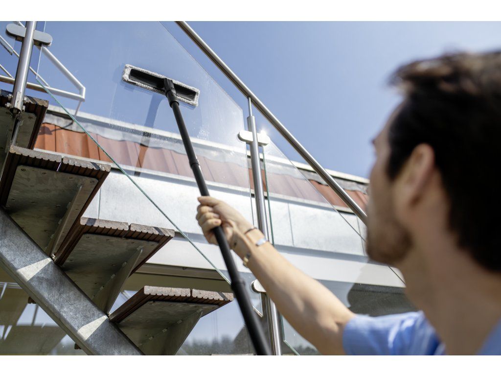 - Pohodlné čistenie ťažko dostupných miest – ideálna na vysoké okná, svetlíky a iné hladké povrchy bez potreby rebríka.