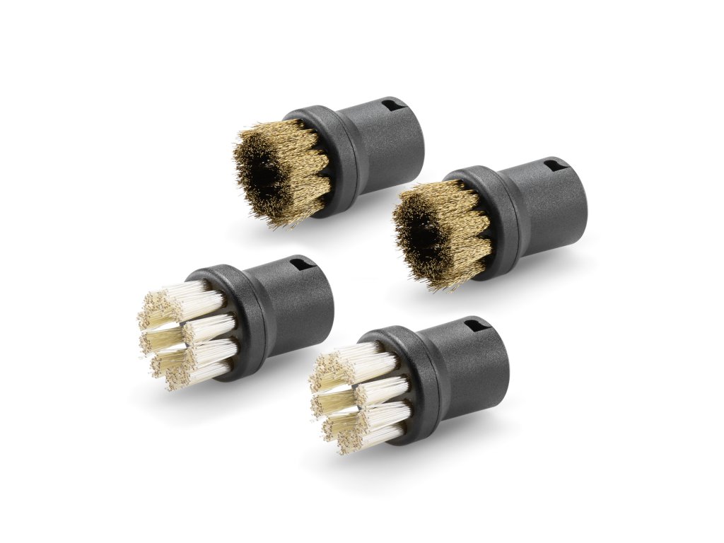 Súprava sa skladá z dvoch mosadzných kefiek a dvoch power kefiek a jej ultra silný čistiaci výkon z nej robí pôsobivý každodenný doplnok k ostatným kruhovým kefkám. Odolné štetiny, ktoré sa opotrebovávajú veľmi pomaly, uľahčujú odstraňovanie odolných nečistôt a usadenín – napríklad na roštoch aleb griloch. Vďaka extrémne dlhotrvajúcim štetinám sú okrúhle kefy silou medzi kefkami parného čističa. Ideálne na použitie na necitlivých povrchoch.