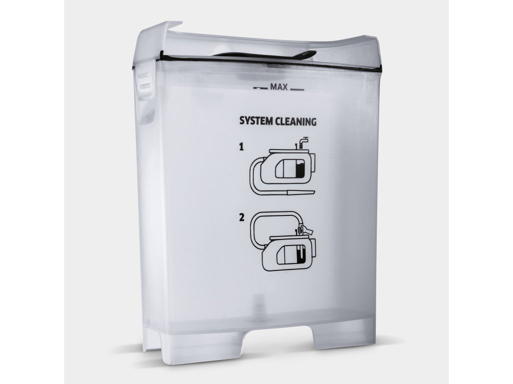 ✔ Dvojitý systém nádrží (čistá / špinavá voda) – umožňuje jednoduché doplnenie a vyprázdnenie bez kontaktu s nečistotami.