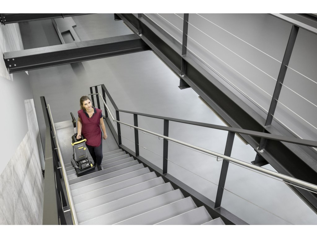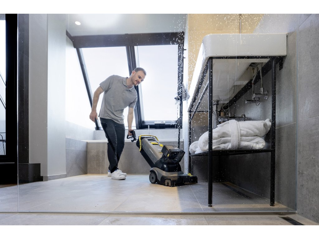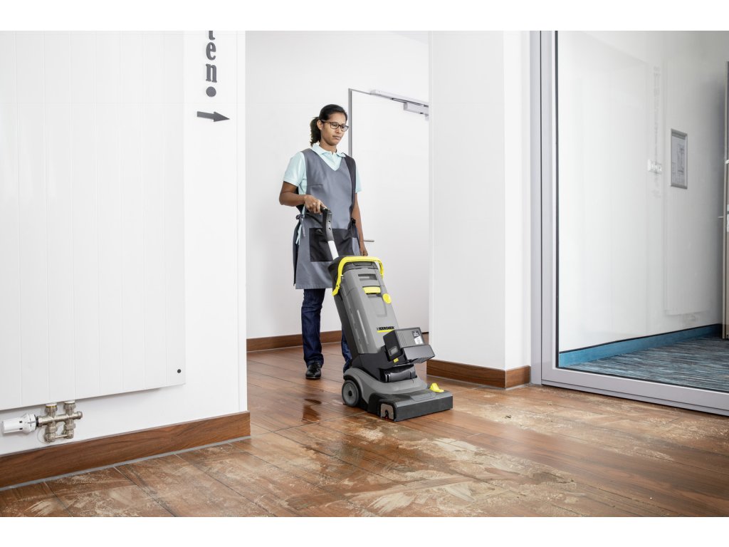 Podobne ako ručne, len oveľa lepšie: Vďaka svojmu kompaktnému tvaru, veľmi nízkej hmotnosti iba 14 kilogramov a lítium-iónovej batérii s dlhou životnosťou a výdržou asi 30 minút je náš batériový umývací automat BR 30/4 C Bp Pack skutočnou alternatívnou ručného čistenia tvrdých plôch s rozsahom až do 200 m². Prítlak, ktorý je v porovnaní s bežným mopom 10-násobne vyšší, ako aj rýchlosť valcov s cca 1500 otáčkami zaručujú výrazne lepšie výsledky čistenia. A odsávanie je pritom možné dopredu aj dozadu. Pri obzvlášť nepoddajnom znečistení je možné sacie lišty nadvihnúť, aby sa predĺžila doba pôsobenia čistiaceho roztoku. Po čistení ostávajú podlahy okamžite čisté a hlavne suché – teda nešmykľavé. Tento veľmi mobilný bezkáblový stroj sa ideálne hodí na čistenie podláh v malých obchodoch, reštauráciách, čerpacích staniciach, supermarketoch, sanitárnych priestoroch a kuchyniach alebo aj ako doplnok k existujúcim veľkým umývacím automatom.
