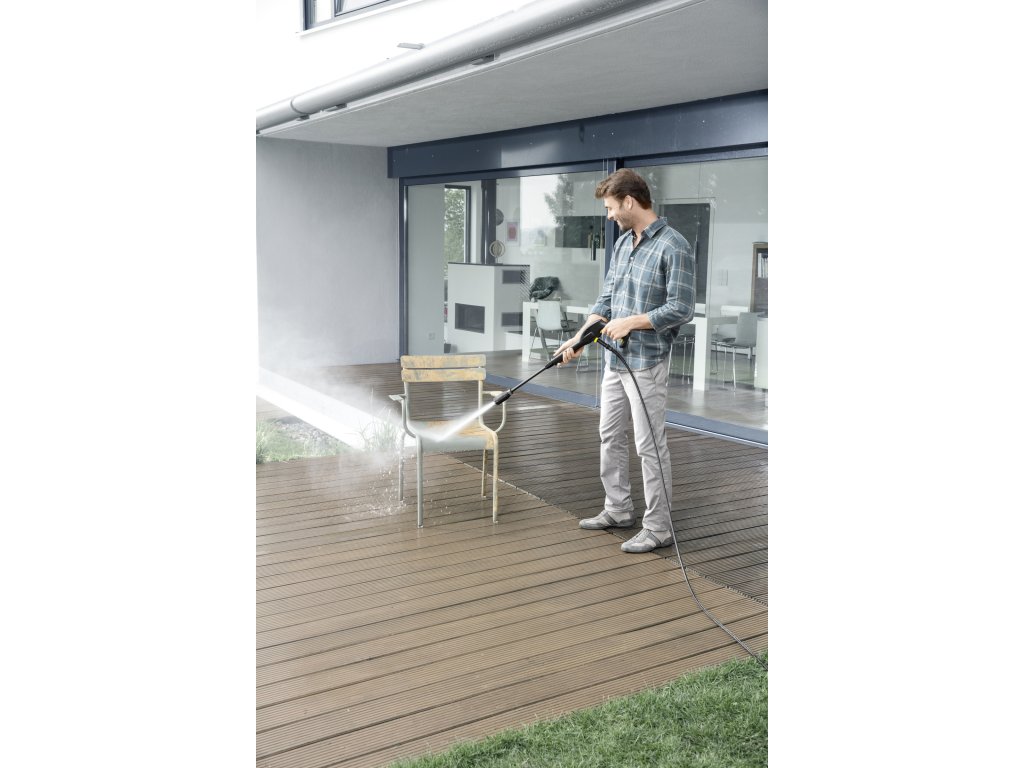 Kärcher K 2 Power Control je vysokotlakový čistič navrhnutý pre príležitostné použitie a odstraňovanie ľahkého znečistenia okolo domu. Vďaka svojmu kompaktnému a ľahkému dizajnu je ideálny na čistenie bicyklov, záhradného náradia, záhradného nábytku a ďalších predmetov.
