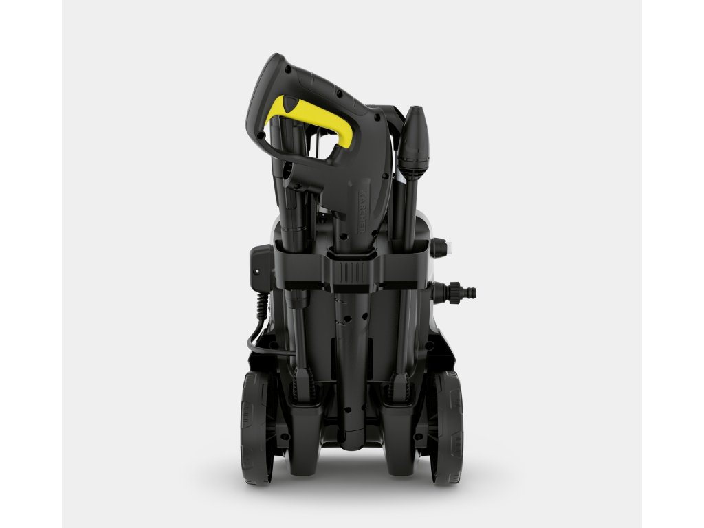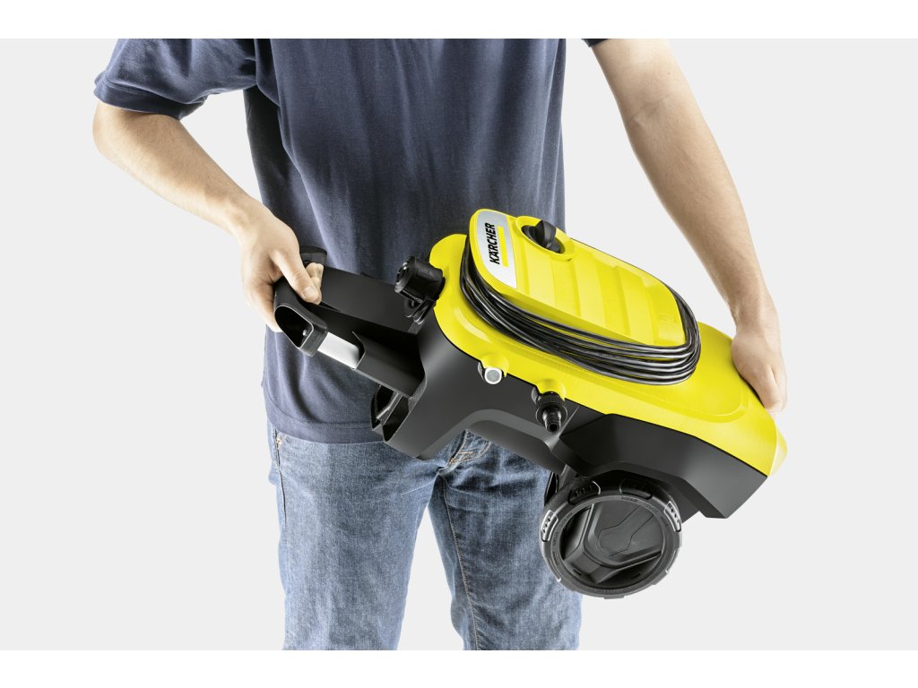 Či už v kufri auta alebo na polici, vysokotlakový čistič K 4 Compact sa vďaka svojim kompaktným rozmerom ľahko zmestí kamkoľvek. Pri používaní je mimoriadne praktický – umožňuje horizontálne aj vertikálne použitie, jednoducho sa prenáša, rýchlo odkladá a poskytuje plný výkon vysokotlakového čistenia. Pohodlnú manipuláciu zabezpečuje výškovo nastaviteľná teleskopická rukoväť.